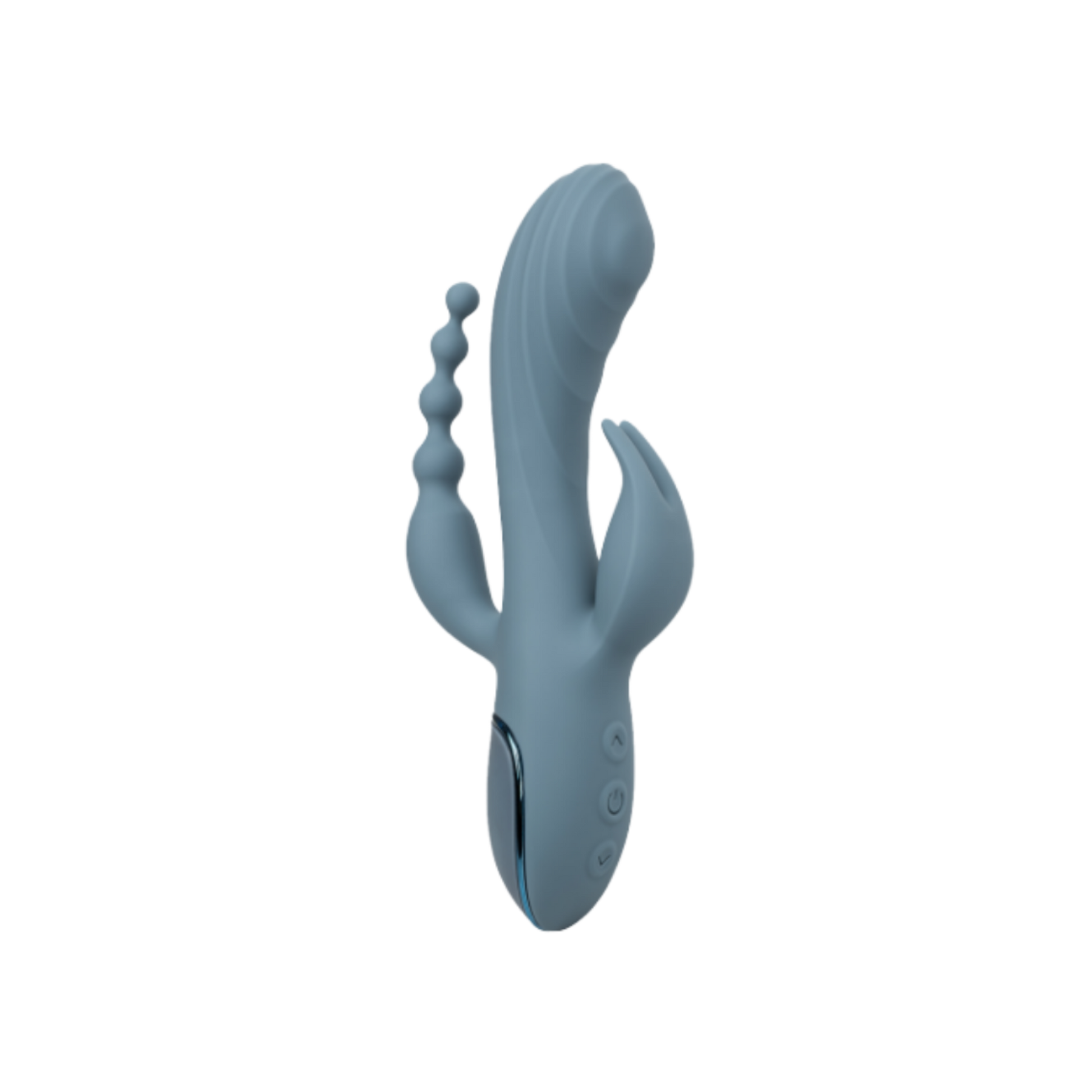Powerful triple action massager with motors located in the shaft, stimulator and tail. 3 speeds of thumping pulsation in the shaft. 10 functions of vibration, pulsation and escalation in the stimulator and beaded tail. Body-safe Silicone and 100% waterproof. Independently operated shaft and stimulators. USB rechargeable – charging cord included.