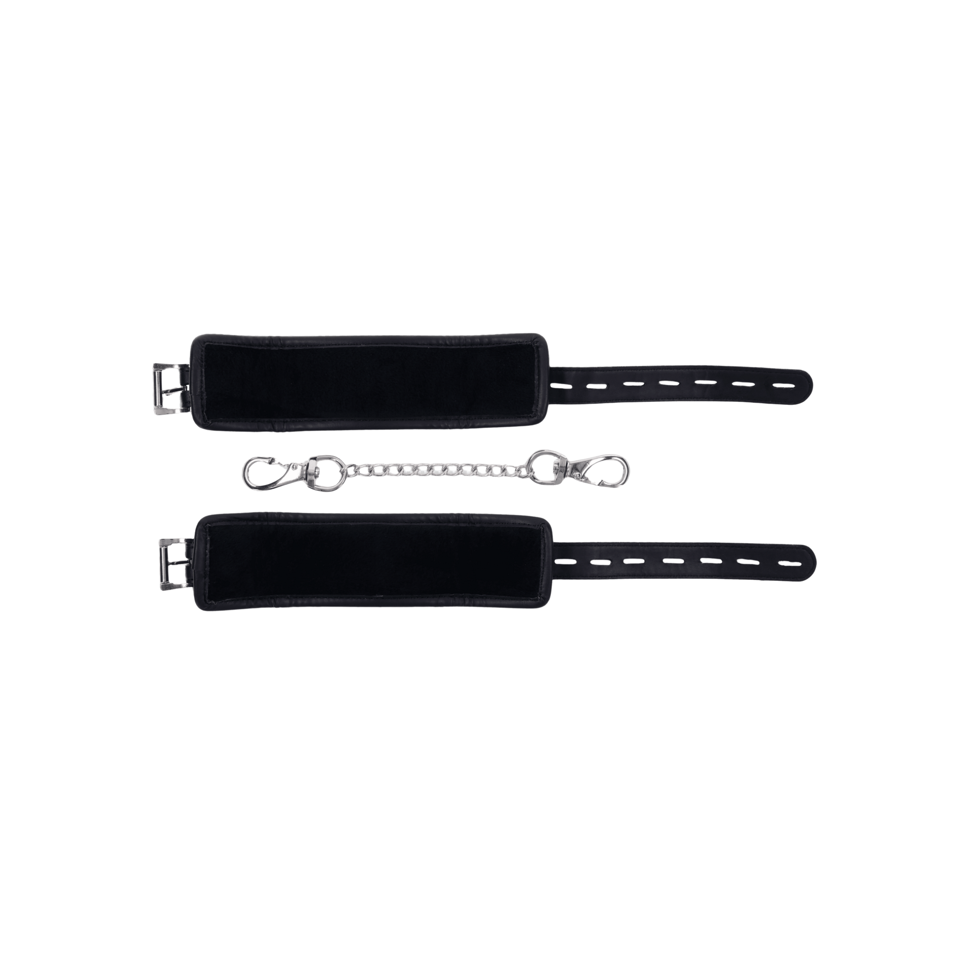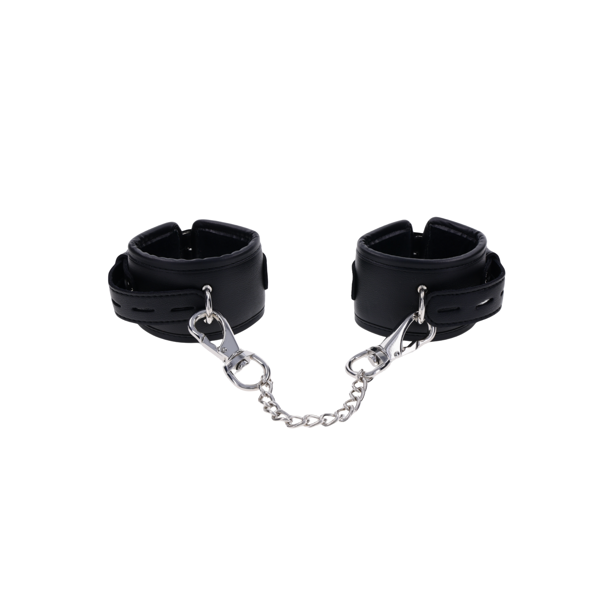 Take control with the Edge® Handcuffs, the perfect complement to your power play. These matching black cuffs are padded for comfort and durability, designed for extended wear and secure restraint. Featuring sleek silver metal hardware and reinforced stitching, they’re built to withstand even the most intense sessions. The adjustable buckle closure ensures a customizable fit, while a sturdy rings allow for versatile attachment to other restraints or bondage gear. Whether you're a seasoned pro or a curious beginner, the Edge® Handcuffs offer a perfect balance of comfort and control.