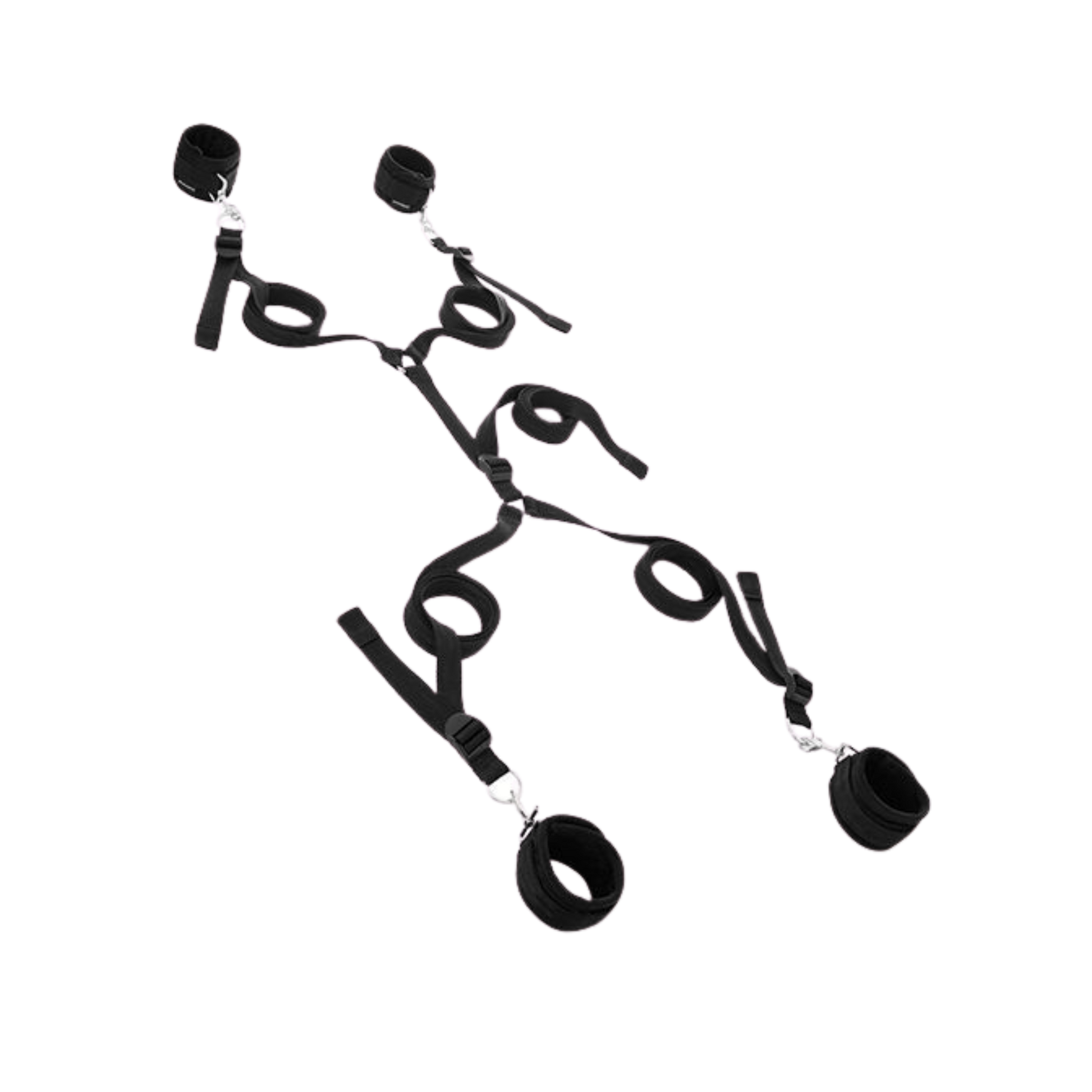 The original (yes, we invented it) Under The Bed Restraint System® is easy to set up, in fact, sets up in minutes. 4 adjustable cuffs (fits 4 inch to 12 inch wrists), four restraint straps secured to one connector strap that fits securely under your mattress. Restrains your partners' arms and legs from the sides or bottom of the bed. The restraint strap quickly fits beneath any mattress with no hooks and adjusts to the size you desire. Easy set-up on any mattress. Portable and great for a surprise getaway. Fits any size mattress and travels well Use at home or on your vacations 4 adjustable cuffs (fits 4-12" wrists), four restraint straps secured to one connector strap that fits securely under your mattress Easy set-up on any mattress Portable and great for a surprise getaway Limited Lifetime Warranty In The Box: 4 wrist/ankle cuffs 1 connector strap = 60 inches (152cm) 4 straps = 60 inches (152cm) Materials: 74% polypropylene, 10% polyester, 8% nickel free metal, 5% hook and loop, 3% ABS plastic