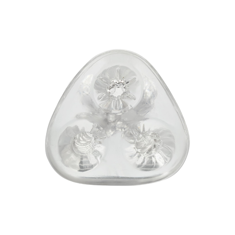 One, a super stimulating ribbed channel. Another, a dual-chambered tunnel filled with teasing ridged nubs. And the third, a swirling vortex full of stimulating waves. All three channels finally converge into one, finishing off with a thrilling combination of textures.